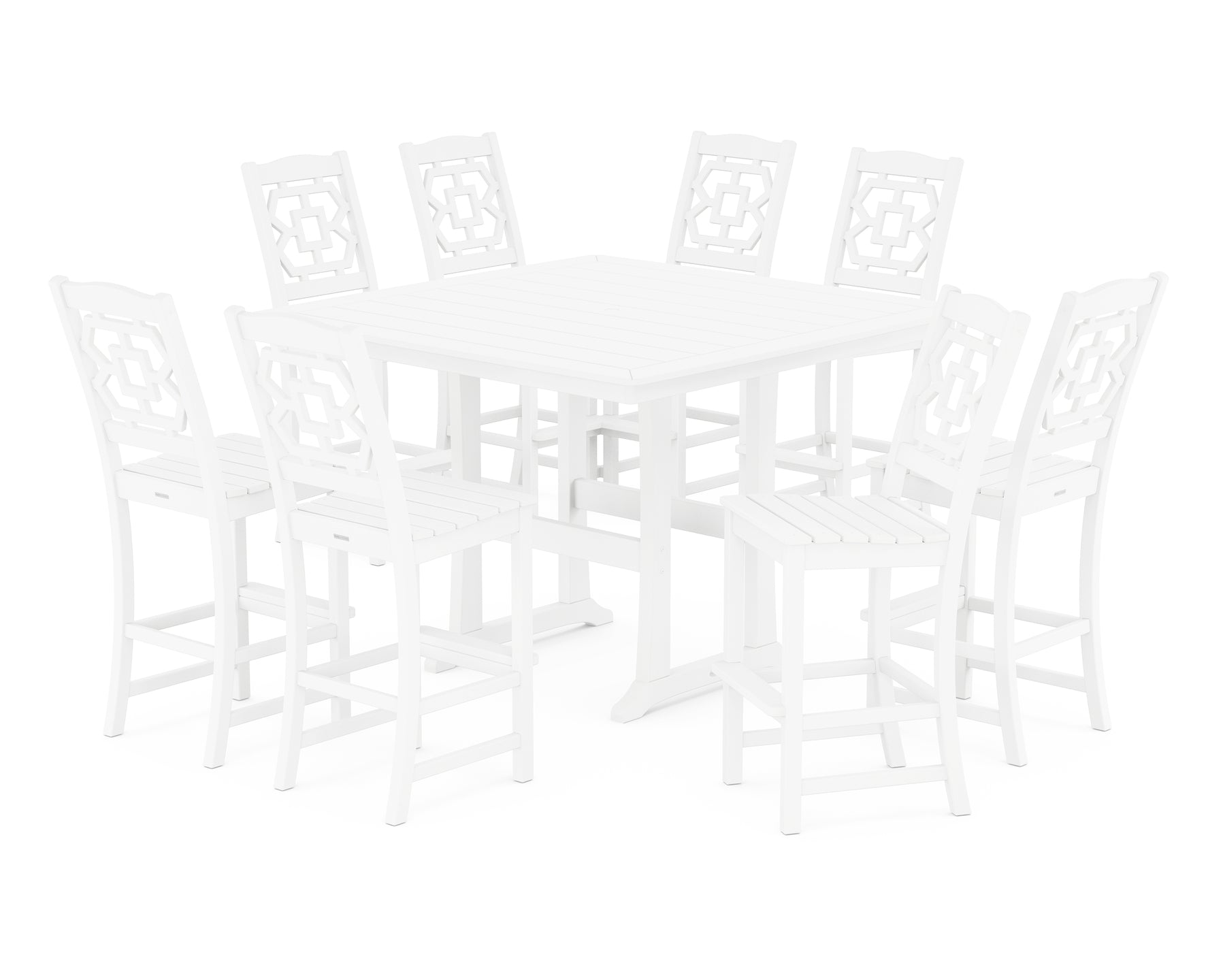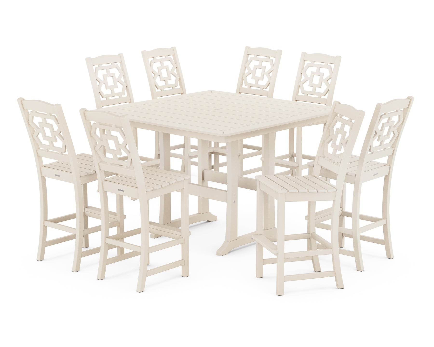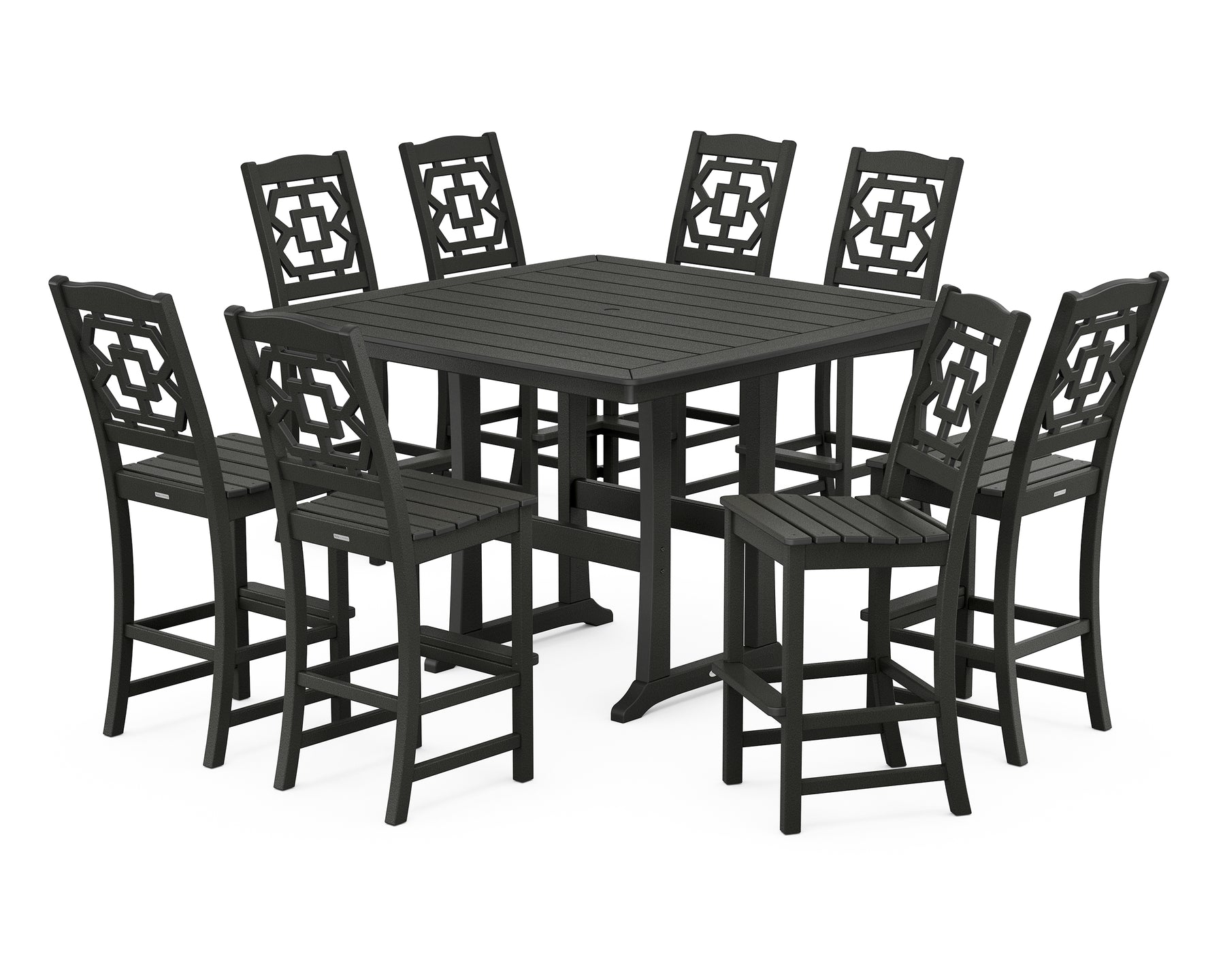 Polywood: Chinoiserie 9-Piece Square Side Chair Bar Set with Trestle Legs