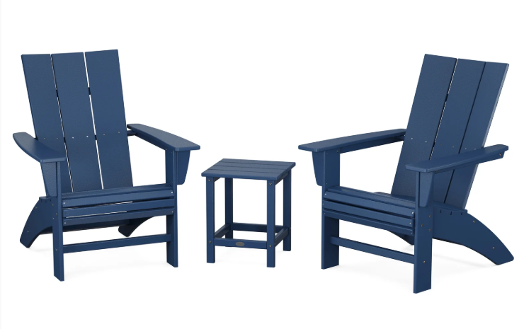 Polywood: Modern 3-Piece Curveback Adirondack Set with Long Island 18" Side Table
